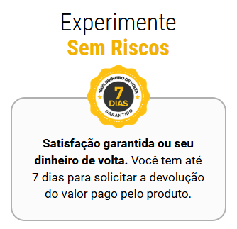 Você tem 7 dias de garantia incondicional. Se por qualquer motivo não ficar satisfeito, é só nos enviar um e-mail e devolvemos 100% do seu dinheiro, sem perguntas.